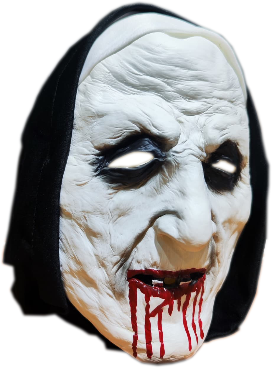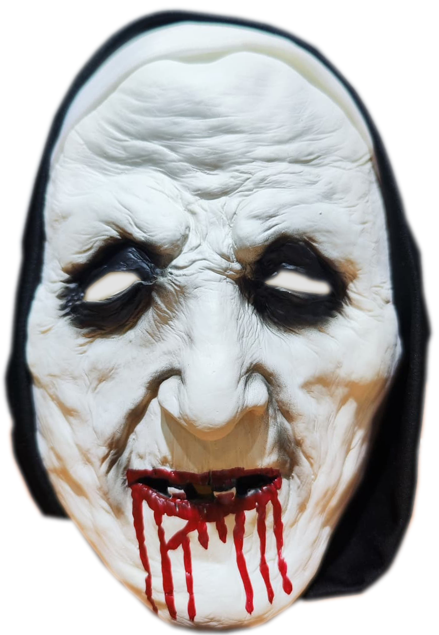Mascara de latex de cura o monje sangriento, con capucha negra con detalle blanco en tela elasticada