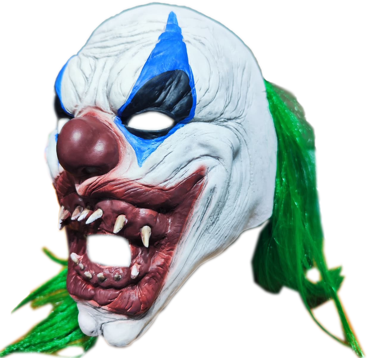 PAYASO DE TERROR PELO LARGO Y VERDE CON DIENTES TERRORIFICOS